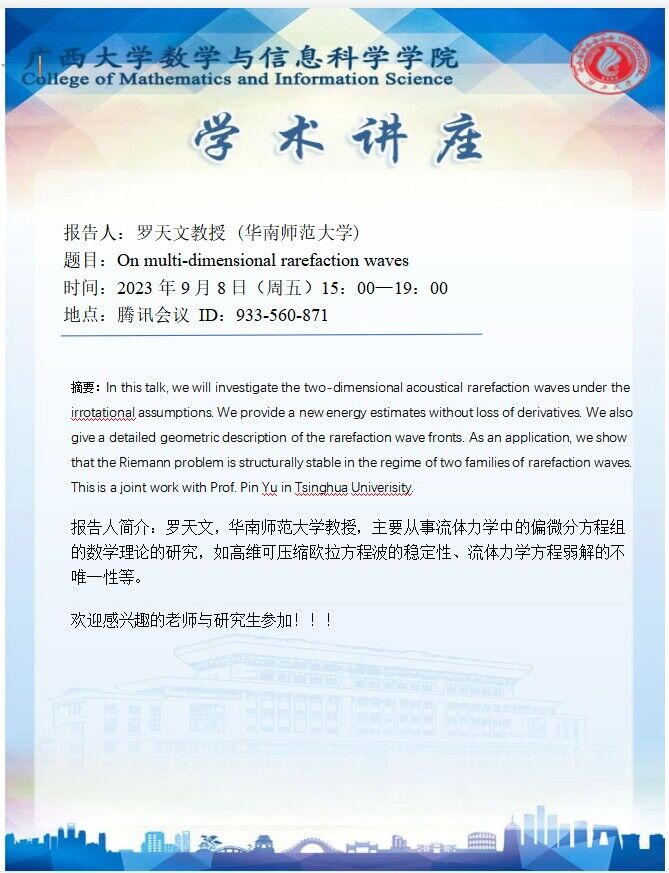 学术讲座:On multi-dimensional rarefaction waves