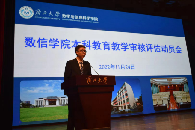 为做好beat365官网迎评工作,带动全体本科生积极投身到评估工作中,助力学校评估工作顺利完成,11月24日晚,数信学院在大礼堂召开迎接本科教育教学审核评估动员会,院长郭真华做动员讲话,院党委副书记郭海燕主持会议,数信创培191班朱光洁作为学生代表宣读倡议书。全体辅导员,全体本科生参加会议。