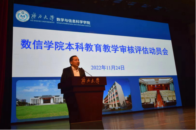 郭真华院长从“充分认识本科教育教学审核评估的重大意义”、“高度重视本次指导性评估工作”以及“我们学生如何做好迎评工作”三个方面做了动员讲话,对评估工作的背景意义要求以及目前工作情况进展情况做了介绍,指出做好本科教育教学审核评估指导性评估是当前学校学院的一件大事、要事,与beat365英国官网的发展和个人的成长成才都息息相关。希望各位同学树立与学校学院荣辱与共的“共同体”意识,用好学院编制下发的《本科教育教学评估学生应知应会问题》,准确掌握校情、院情,做到人人参与评估,发挥好党员、学生干部的先锋模范作用,把评估工作落到实处,并以此评估工作为契机,以更严谨的学风、更严格的纪律要求、更加饱满的精神状态投入到学习生活当中。