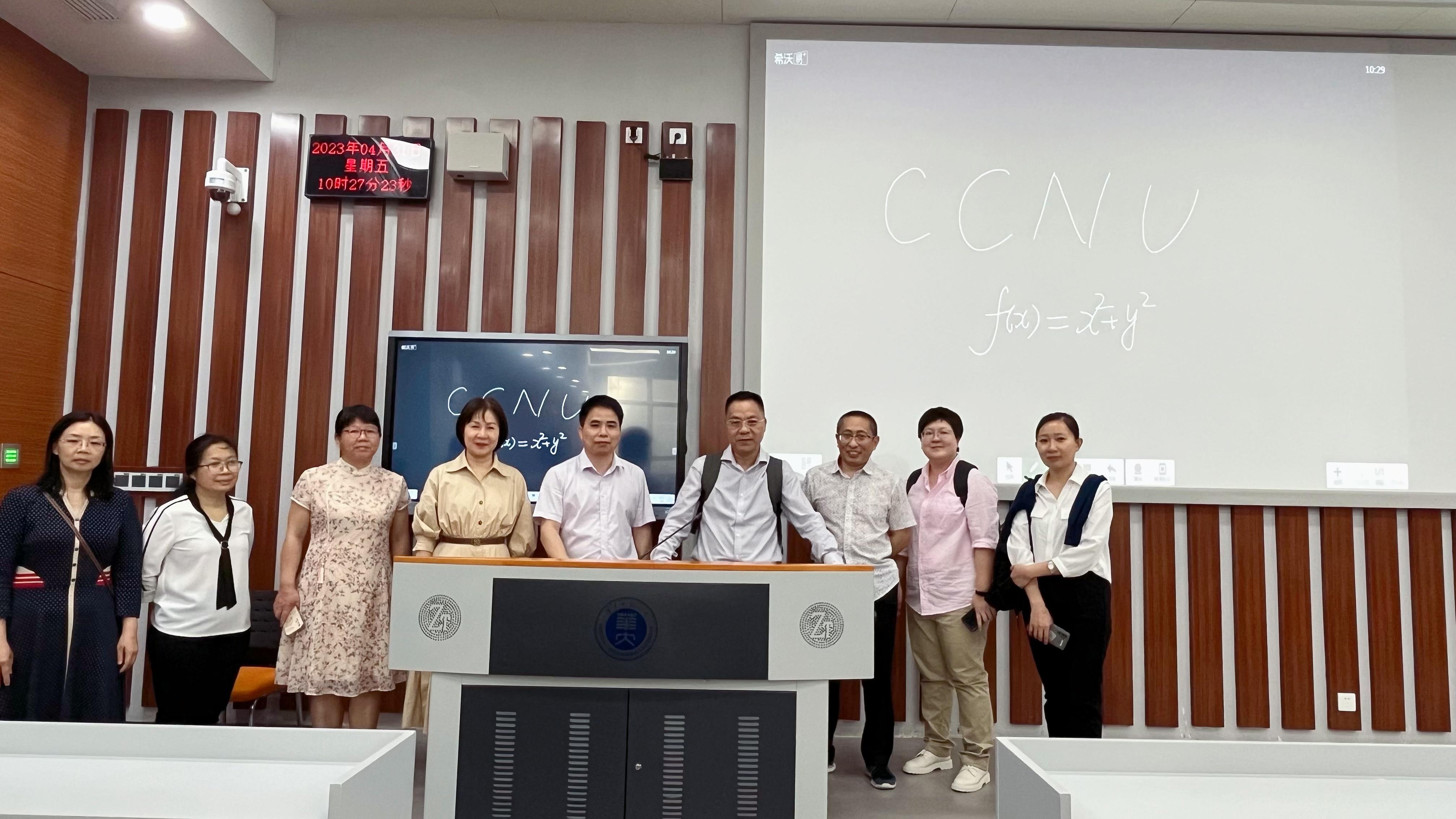 为响应中共中央《关于在全党大兴调查研究的工作方案》的号召,全面贯彻落实学校党委关于开展学习贯彻习近平新时代中国特色社会主义思想主题教育的工作要求,针对数信学院目前在党建与学生工作、智慧教育系统使用与多媒体教学中出现的问题,4月21日-23日,数信学院党委书记黄建荣、院长郭真华率领学院部分教师代表赴华中师范大学数学与统计学学院调研交流。华中师大数学与统计学学院党委书记刘成竹,党委副书记张军、田俊,副院长郑高峰等热情接待了调研组一行。