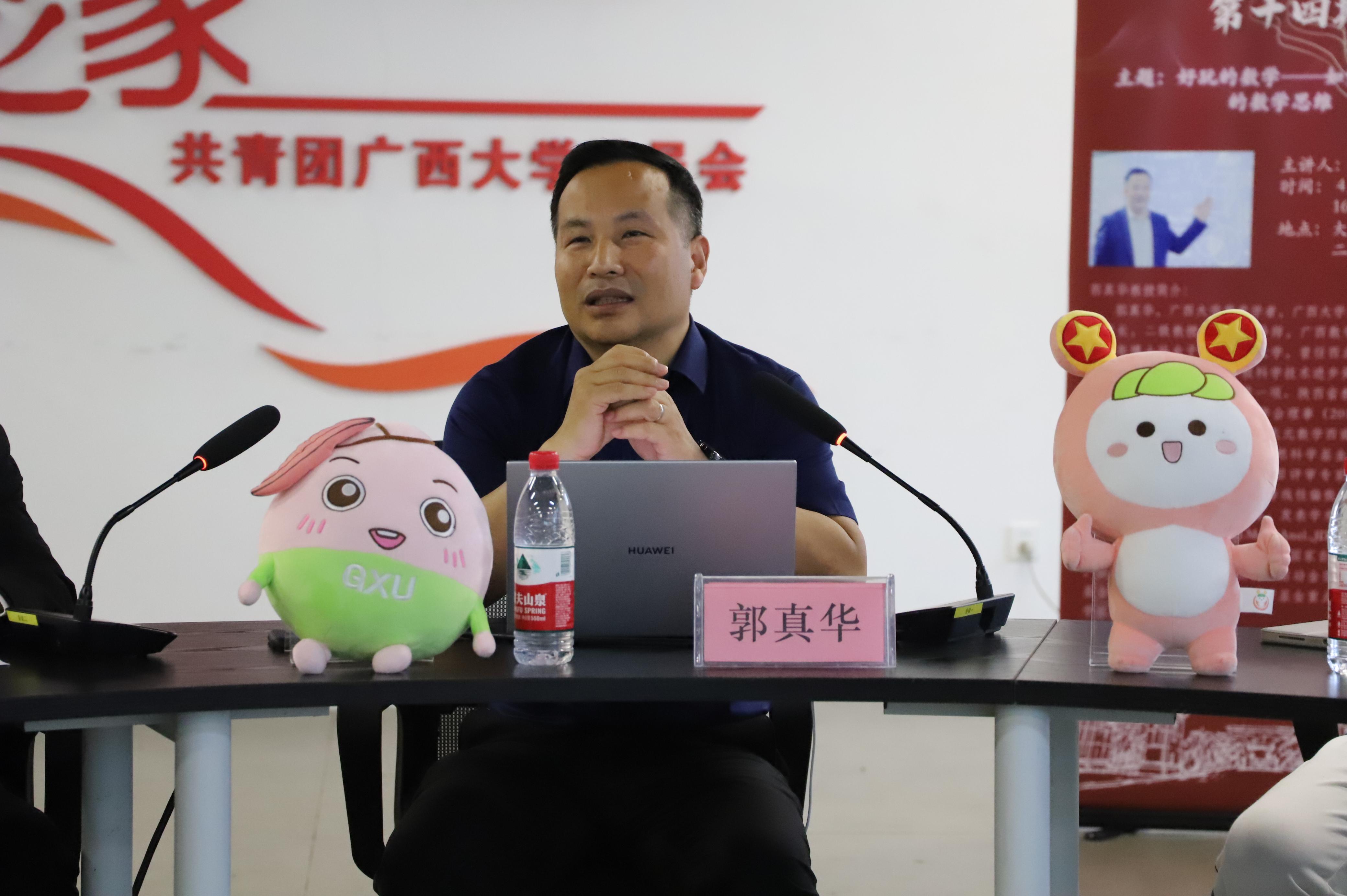 4月28日,由校团委、校国家大学生文化素质教育基地办公室举办的第十四期“水塔沙龙”在大学生活动中心举办。beat365英国官网君武学者、数学与信息科学学院院长郭真华教授担任主讲,以“好玩的数学——如何养成自己的数学思维”为主题,为同学们讲述他在科研道路上潜心治学、教书育人、敬业奉献的故事,带领同学们感受数学的独特魅力,激励青年学子们培养科学理性的数学思维,在学习成长道路上求真务实、踏实奋进。