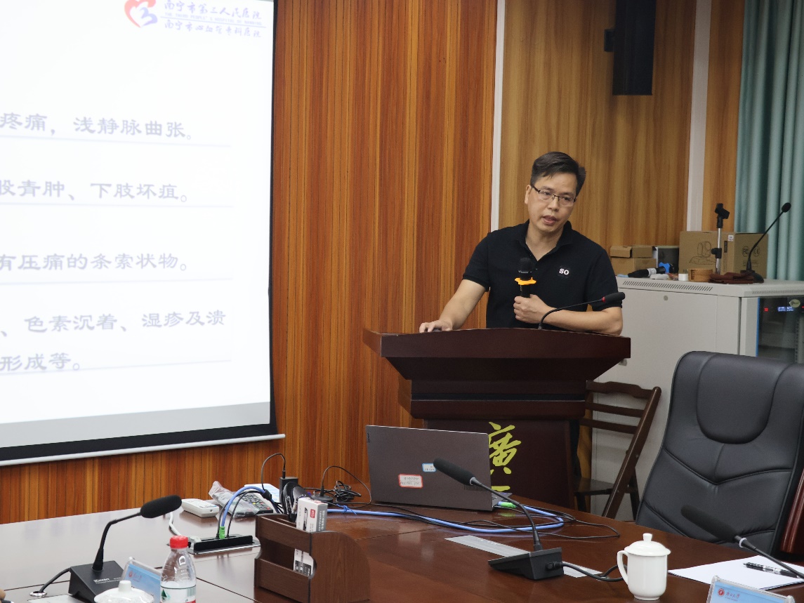 学术交流活动由郭真华院长主持。首先,学院副院长、广西应用数学中心(beat365英国官网)执行主任袁功林教授从部门机构、人才队伍、产学研合作、项目开展以及重点研究方向对广西应用数学中心(beat365英国官网)的建设情况作了介绍。随后,南宁市第三人民医院普外心胸科主任李树松副主任医师作了《下肢静脉血栓》专题报告。他深入浅出、系统详细地介绍了下肢静脉血栓概述、形成机理、病理及生理、分型及治疗、预防等。