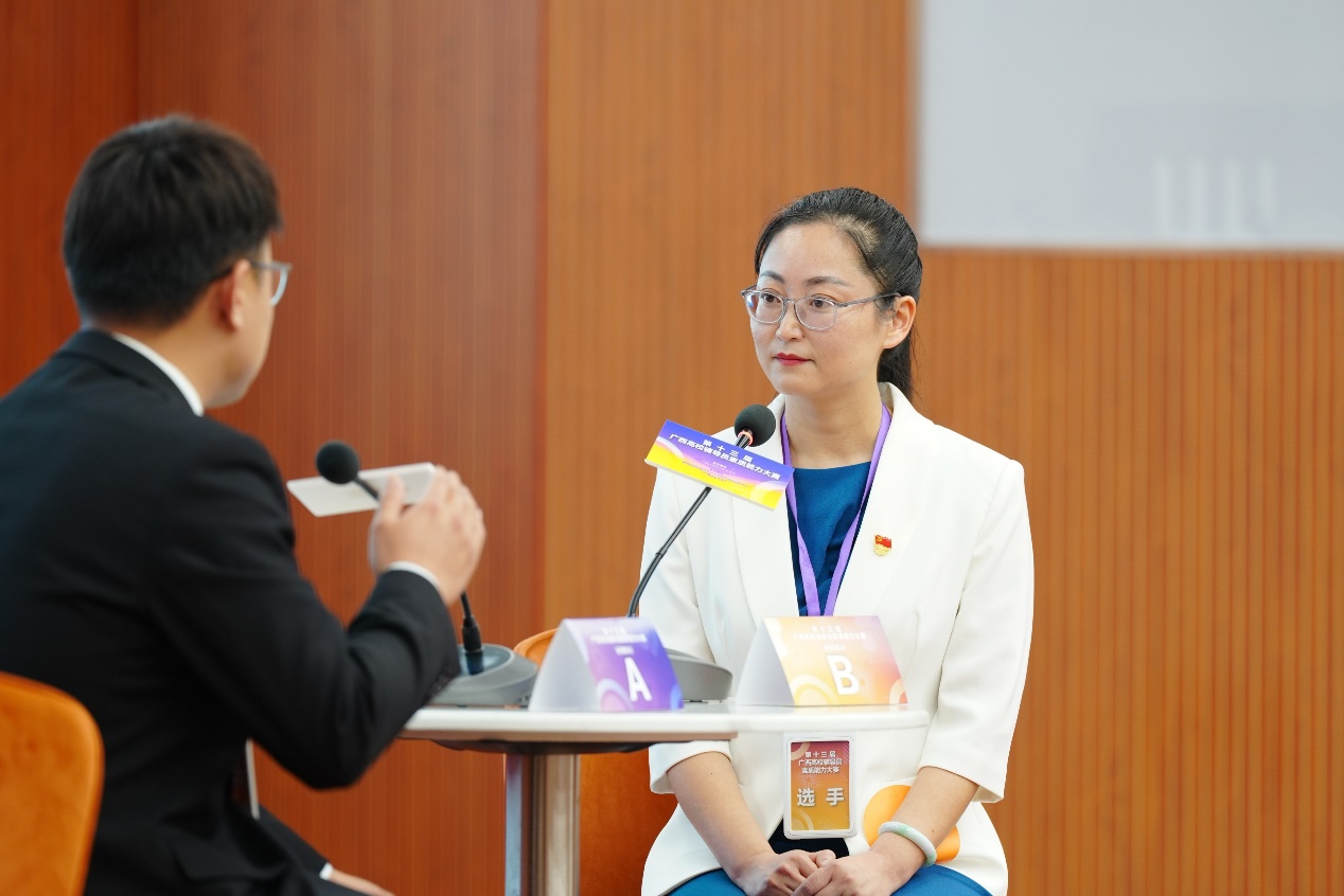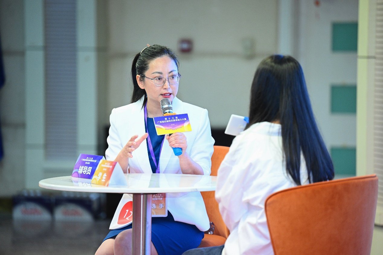 本次大赛共设置基础知识测试、案例研讨、谈心谈话三个环节,旨在对参赛选手的理论水平、专业素养以及解决实际问题的能力进行全方位、多角度考察。在基础知识测试环节,孙晓黎老师沉稳发挥,认真作答,把党的创新理论、路线方针政策、高校思想政治工作重要会议及文件精神等理论和辅导员业务知识融入答卷。在案例研讨环节,孙晓黎老师准确把握案例情景和问题症结,就案例定性、关键问题、解决办法、经验启示等进行深入研讨。谈心谈话中她认真倾听学生,与学生共情交流,将解决学生思想问题与解决实际问题相结合,充分展现了beat365官网辅导员扎实的专业功底和良好的职业素养。
