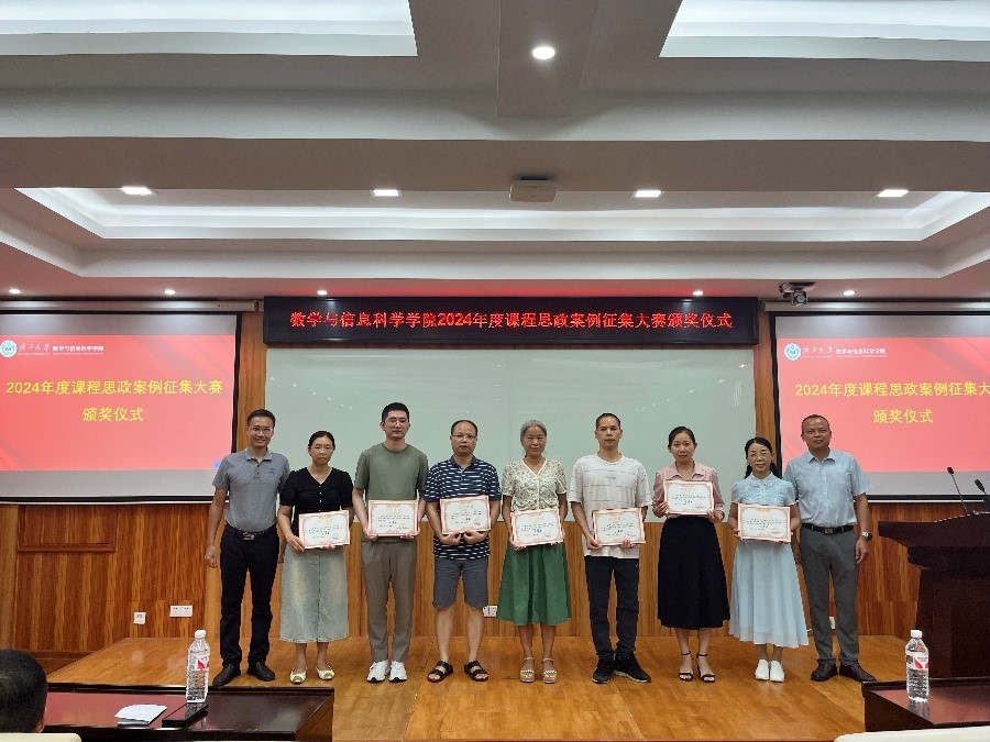 7月11日下午,数信学院2024年度课程思政案例征集大赛颁奖仪式在学院109教室圆满举行。本次活动由学院党委副书记唐旭彬主持,学院领导班子成员为获奖者颁奖。
