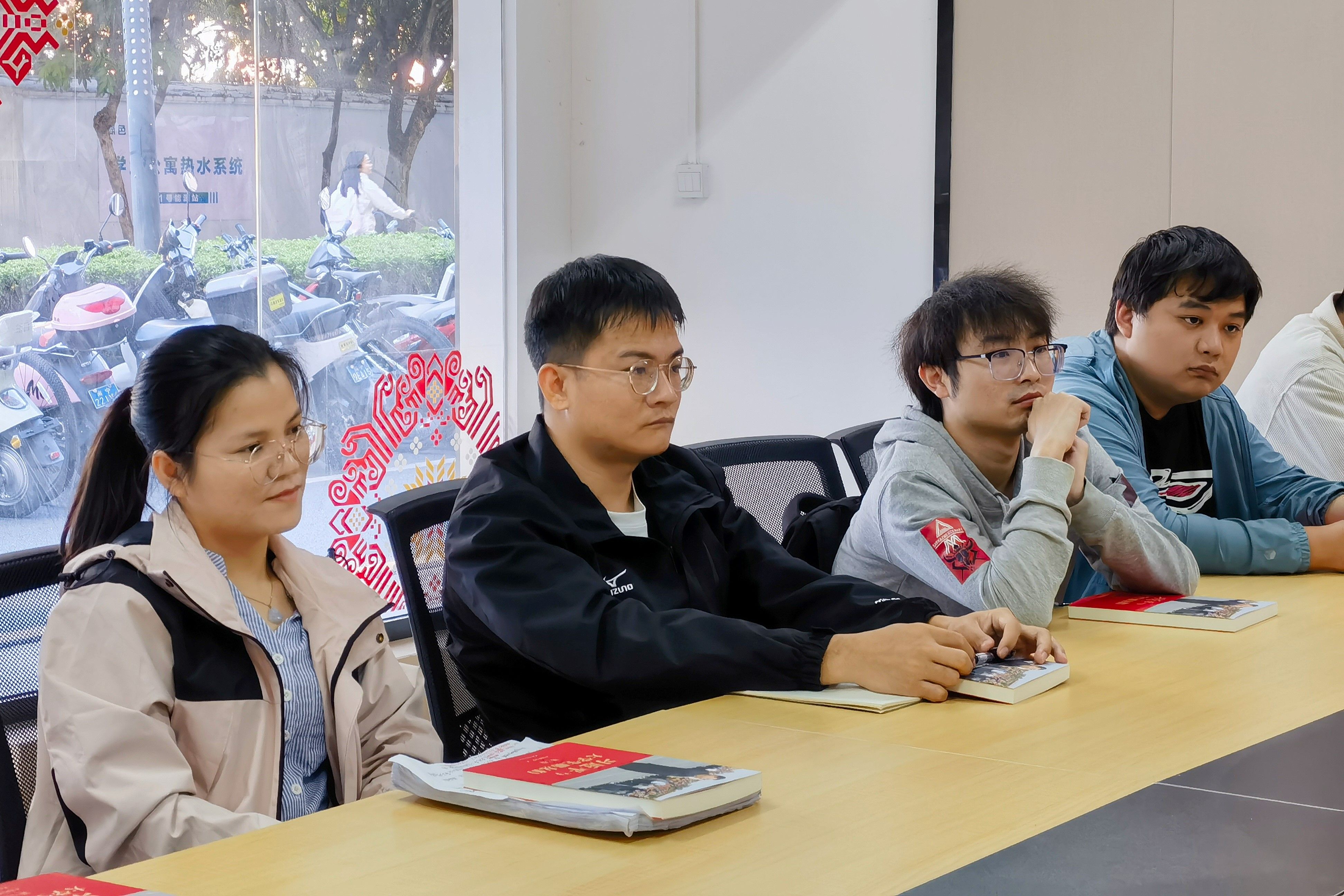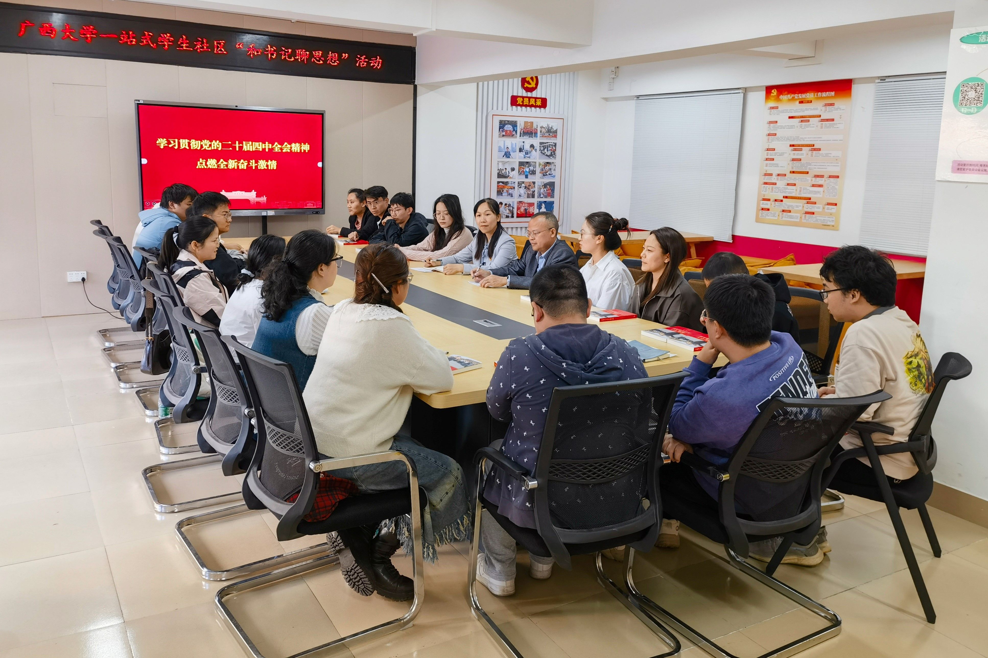 为深入学习贯彻党的二十届四中全会精神,激励beat365官网博士生潜心科研、奋发进取、挺膺担当,11月12日下午,院党委书记吴华丽在西21栋学生一站式社区与beat365官网18名博士生代表共同学习党的二十届四中全会精神,并进行座谈交流。院党委副书记、纪委书记石志刚主持座谈会。座谈会前,吴华丽向与会同学一一赠送了《习近平与大学生朋友们》。
