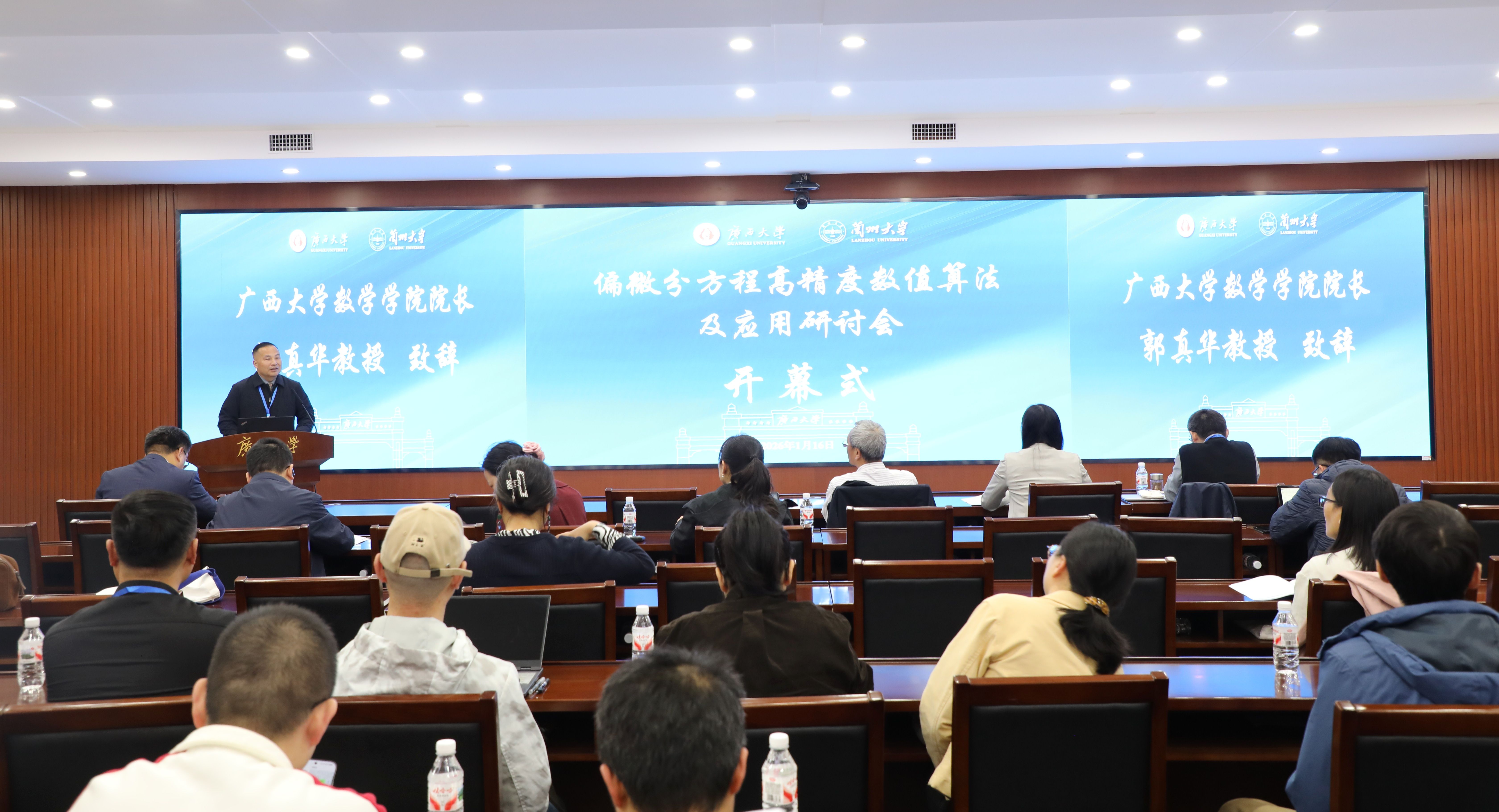 2026年1月15日至18日,“偏微分方程高精度数值算法及应用研讨会”在beat365官网成功举办。本次研讨会由beat365英国官网与兰州大学联合主办,beat365英国官网、兰州大学数学与统计学院、广西数学应用中心(beat365英国官网)及beat365英国官网广西数学研究中心共同承办。