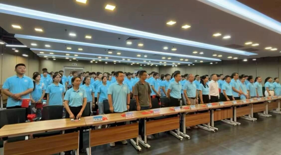 仪式在深情的旋律中拉开帷幕。全体师生手持鲜艳的五星红旗,共同唱响《我和我的祖国》。“我和我的祖国,一刻也不能分割......”动人的歌声与舞动的红旗交相辉映,展现了数信学子昂扬向上的精神风貌。