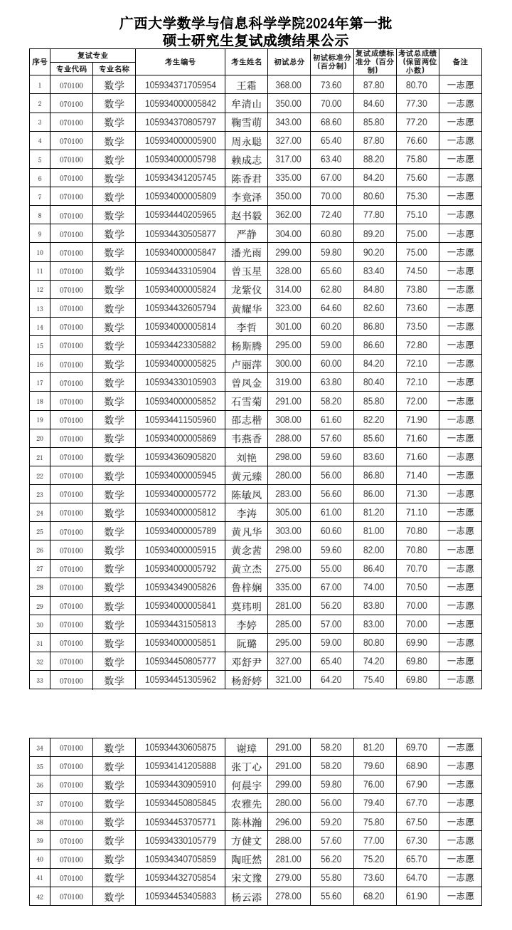 beat365英国官网数学与信息科学学院2024年第一批硕士研究生复试成绩结果公示