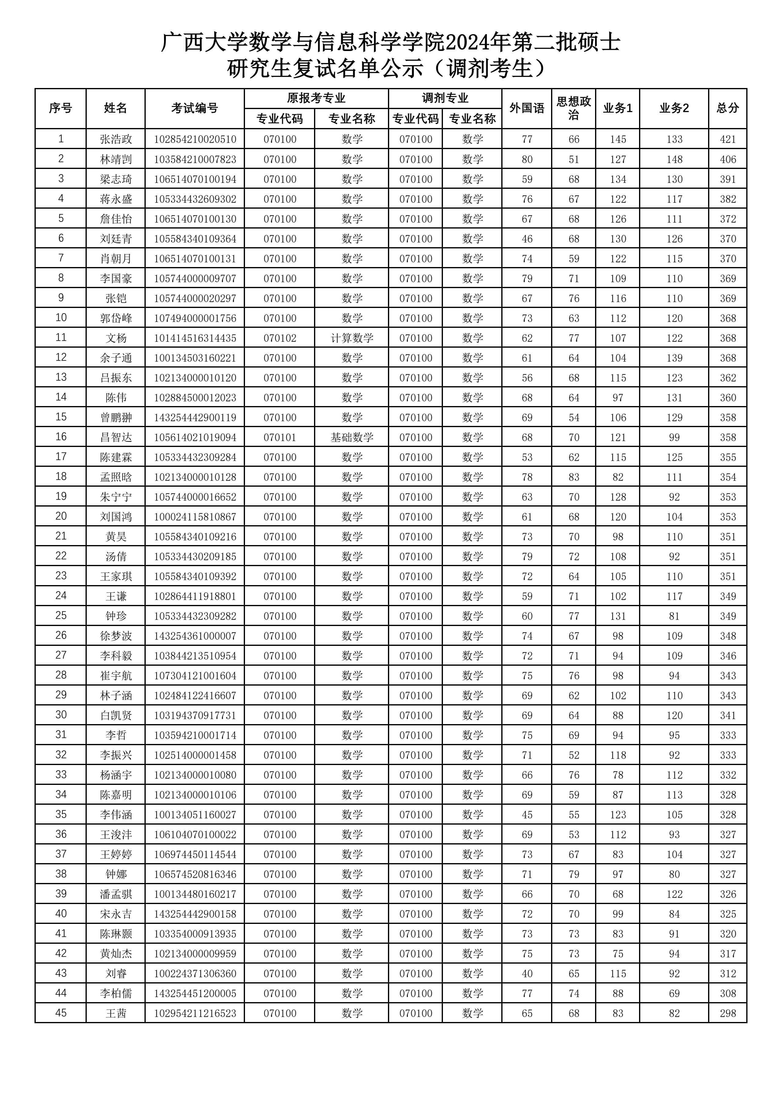 beat365英国官网数学与信息科学学院2024年第二批硕士研究生复试结果公示(调剂)