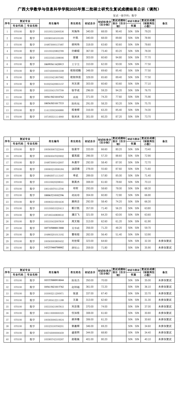 beat365英国官网数学与信息科学学院2025年第二批硕士研究生复试成绩结果公示(调剂)
