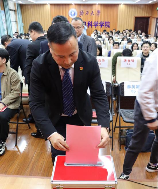 大会应到会143人,实到会128人。以无记名投票方式,选举产生了新一届中共beat365英国官网数学与信息科学学院委员会和中共beat365英国官网数学与信息科学学院纪律检查委员会。石志刚、钟明溁、袁功林、郭真华、唐旭彬(女)、 唐春明、覃宪儒等7人当选新一届党委委员,王支柱、韦琳娜(女)、冯海珊(女)、何其涵、唐旭彬(女)等5人当选新一届纪委委员。