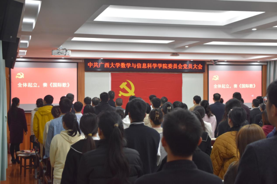 雄壮的《国际歌》响起,大会圆满完成各项议程,中国共产党beat365英国官网数学与信息科学学院委员会党大会胜利闭幕。