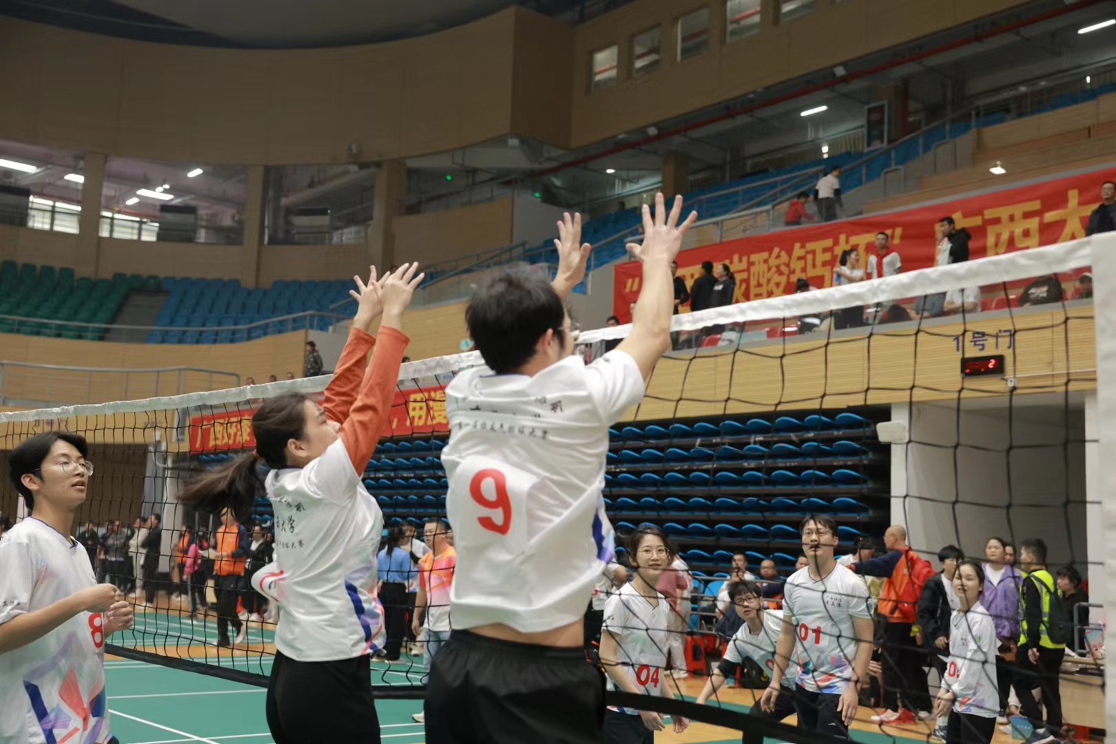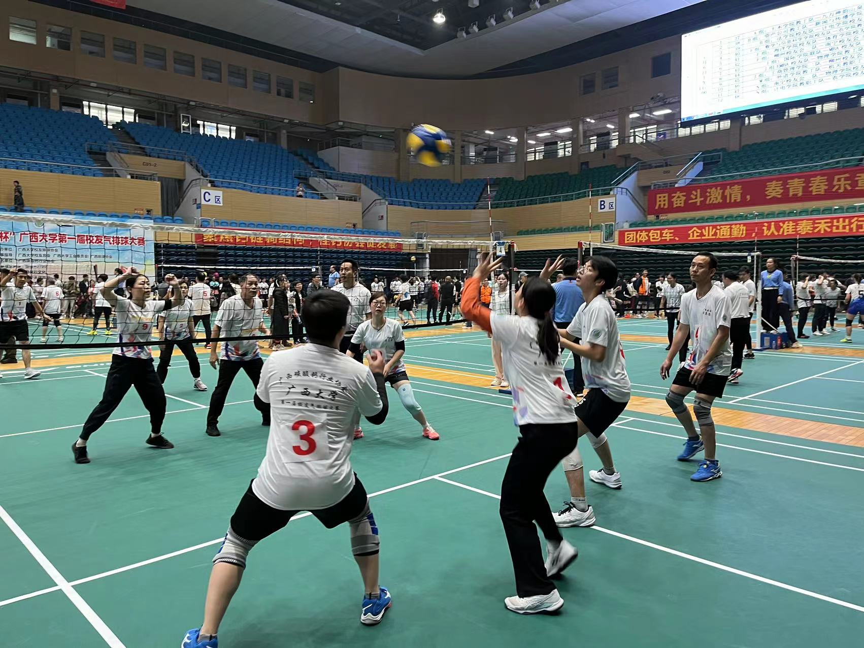 赛场上,队员们认真对待每一球、积极争取每一分,领先时不骄不躁,落后时不气不馁,来自区内不同地方的校友啦啦队员们喊着“龙腾数信、潇洒自信、奋勇拼搏、勇创佳绩”的口号加油助威。那一刻,青春在这里竞相迸发,团结被诠释的淋漓尽致。校友们捧着奖杯,激动的喊出“数信,我爱你;西大,我爱你”的青春强音。
