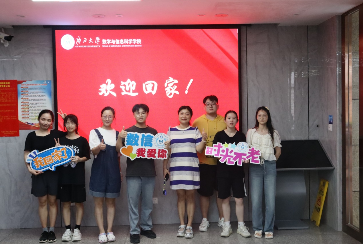 六月,毕业的季节,回忆的季节。6月1日,数学与信息科学学院举办“青春西大 闪耀一夏”2024届毕业季爱校荣校暨欢迎校友们回校活动。活动吸引了30余名校友及其亲人重返母校,学院党委副书记唐旭彬、团委书记孙晓黎等老师参加活动并与校友们合影留念。