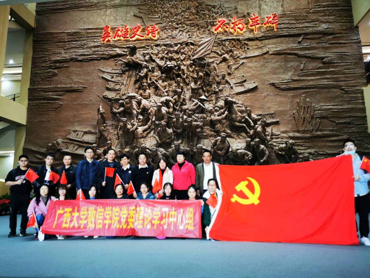 为贯彻落实党史学习教育,继承和发扬党的光荣传统和优良作风,数信学院党委组织院党委理论学习中心组成员及师生代表党员于2021年4月10日—11日两天赴湘江战役发生地桂林全州、灌阳和兴安开展红色教育,重温85年前那场举世瞩目的战役,接受党性和革命传统再教育,感受战役中惊心动魄的感人的故事和伟大的长征精神。