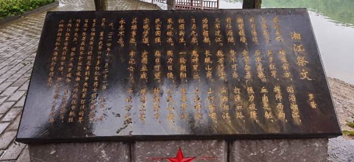 随后,大家赴兴安县界首镇参观中央红军渡江指挥部旧址—界首红军堂、界首渡口、红军街。在指挥部旧址门前的湘江渡口,院党委理论学习中心组全员宣读湘江祭文,祭奠红军先烈,不忘英雄事迹。