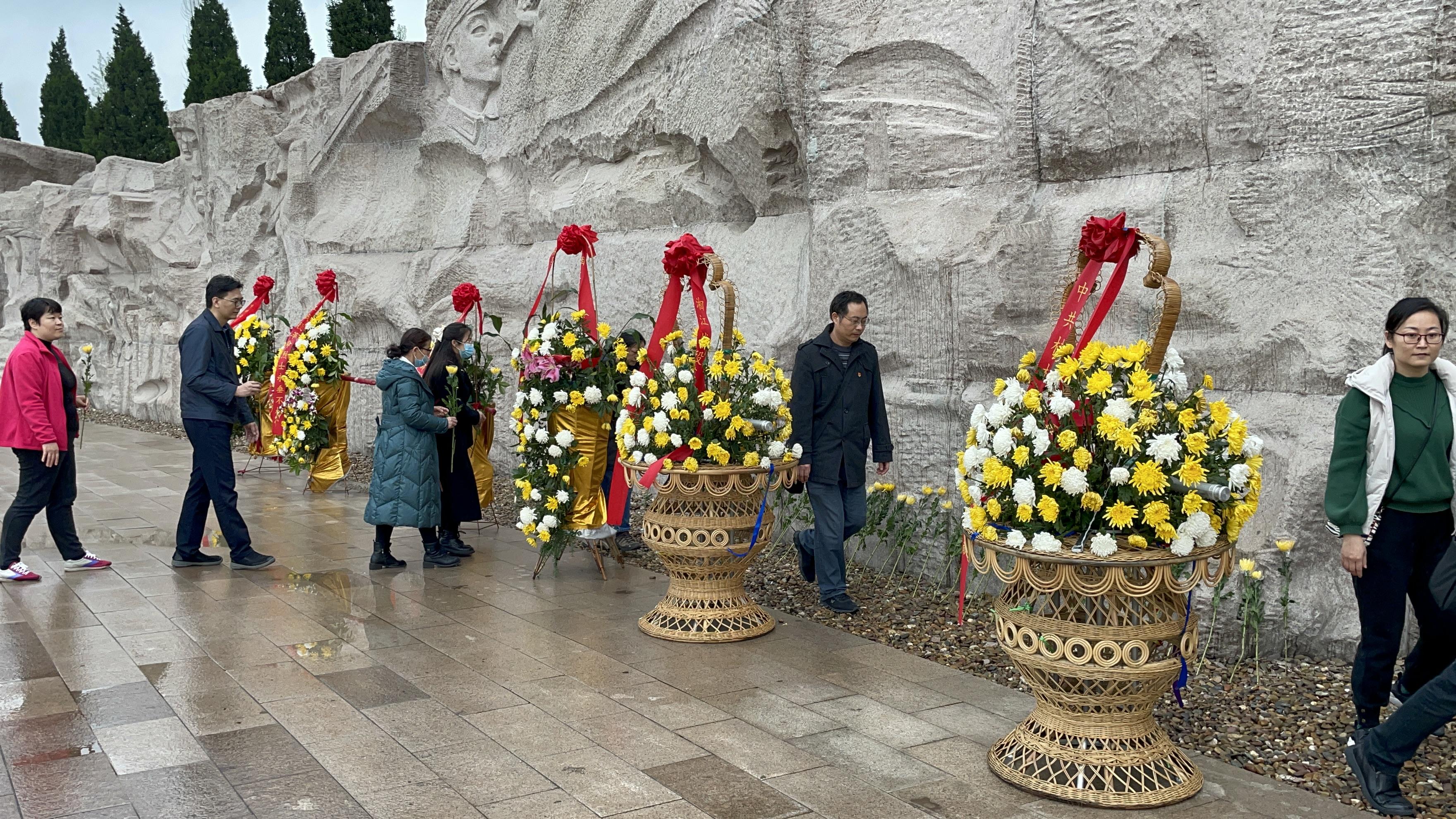 参观完红军长征湘江战役纪念园,大家前往湘江战役脚山铺阻击战纪念碑林—凭吊广场向为祖国和人民英勇献身的革命烈士默哀、献花篮,书记黄建荣整理挽联,行礼鞠躬,以此表达同志们对革命先烈的诚挚敬意,深切缅怀烈士的不朽功绩。